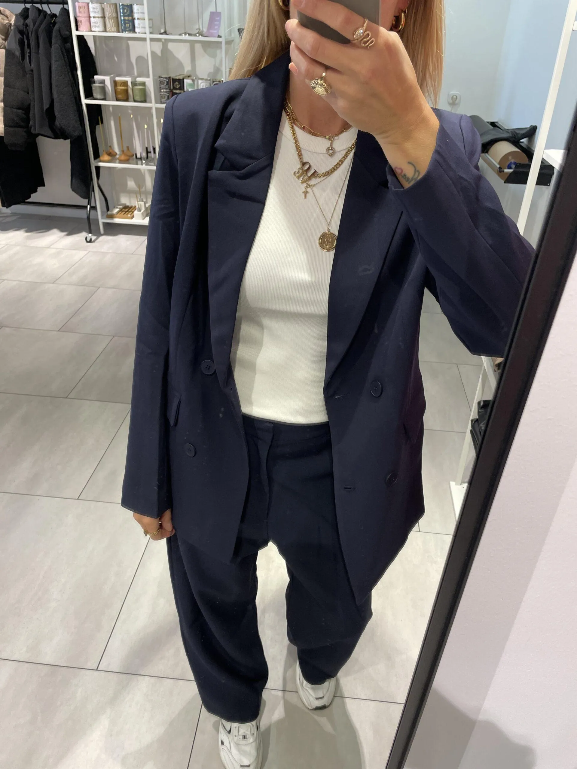Du wirst den ultimativen Mix aus Stil und Bequemlichkeit lieben! Unser Blazer in Marineblau mit Oversized-Passform ist perfekt für den Alltag. Mit seinem lässigen Schnitt und hochwertigem Stoff sorgt dieser Blazer den ganzen Tag über für maximalen Tragekomfort und einen lässigen Look.